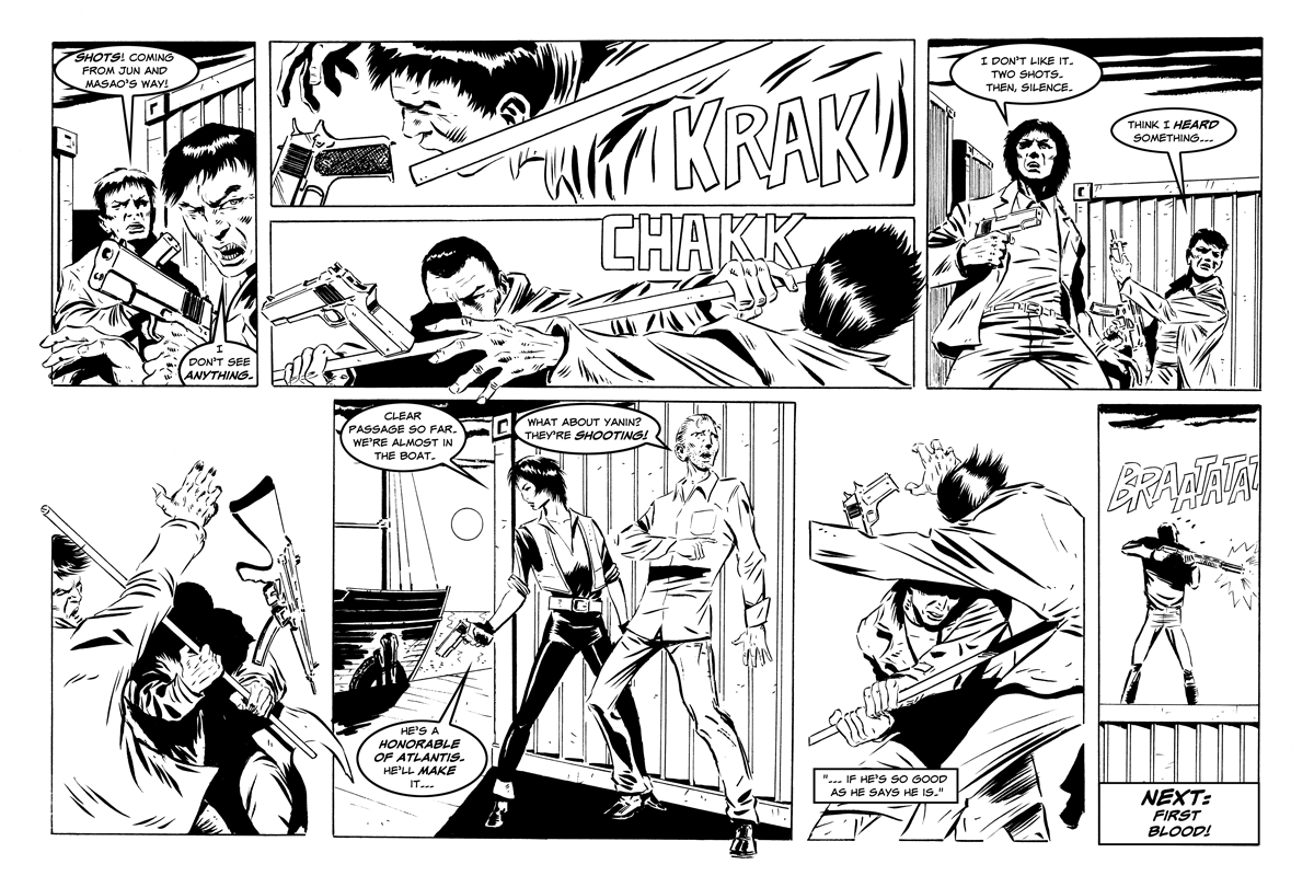 Yanin continues to clear a path for Kenderian and Akemi's escape, but he is not entirely successful...